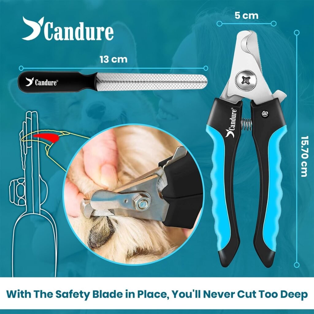 Candure Dog Nail Clippers for Large, Medium and Small Breed Professional Pet Nail Clipper Suitable for Cats, Rabbits and Guinea Pigs With Safety Lock and Protective Guard to Avoid Over Cutting (6″)